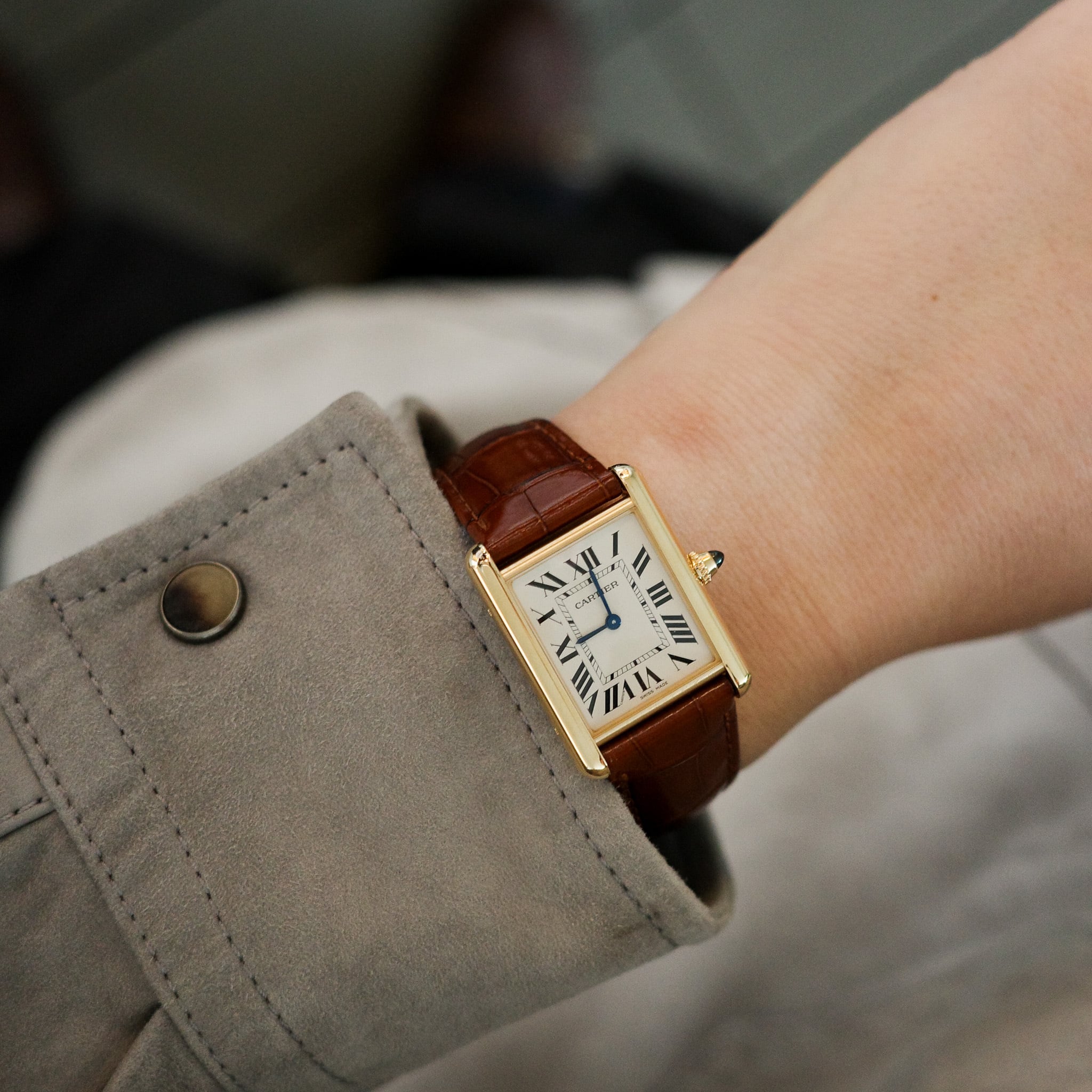 こちらは2025年5月に購入されたギャランティーのついている非常に新しい個体、タンクルイLM クオーツ WGTA0067。