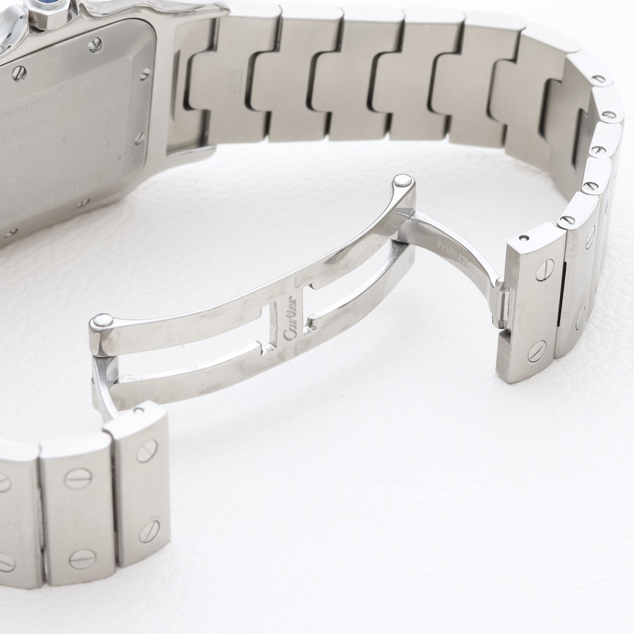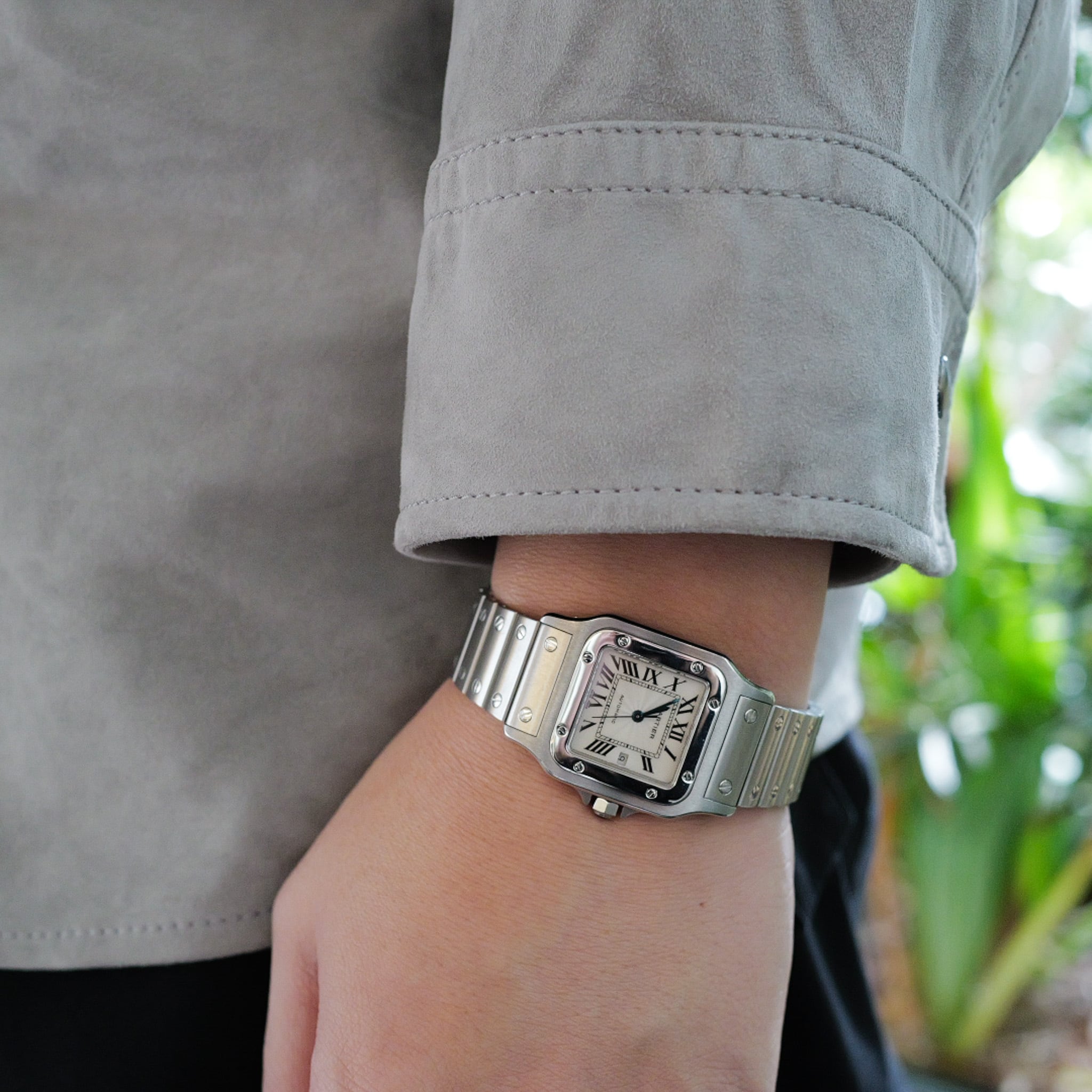 1980年代より長らく続いていたサントスガルベ、サントスカレのモデルとサイズ感は全く一緒で、文字盤、ブレス、ムーブメントが最新の仕様に変更され販売されていたモデルとなります