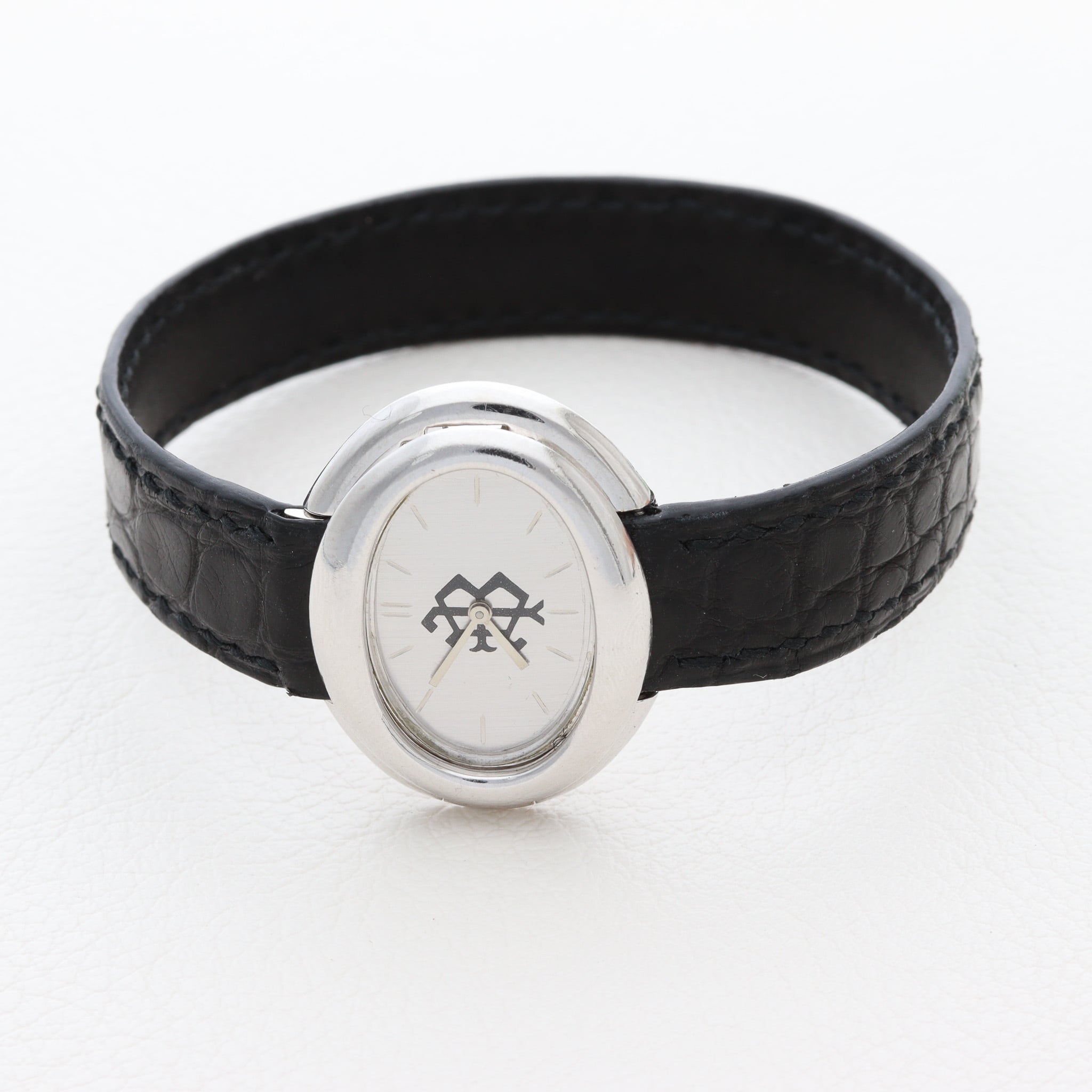 こちらは中でも珍しい Boucheron のオーバル、ハンターケース WG、Bマーク文字盤という中でもかなりの変わり種の一品です。`